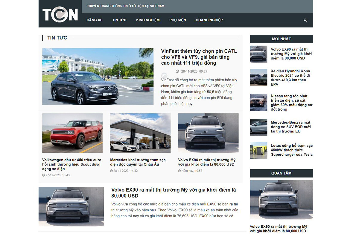 Chuyên trang xe điện Việt Nam tại địa chỉ https://trangcongnghe.com.vn/ev cập nhật đầy đủ thông tin về các mẫu xe ô tô điện từ nhiều hãng xe nổi tiếng trên thế giới cũng như Việt Nam như VinFast, Tesla, BMW, BYD, Nissan, Volkswagen và nhiều thương hiệu khác.