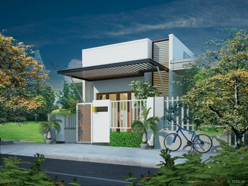 Mẫu nhà cấp 4 mái bằng có thiết kế khá đơn giản, nó được tạo thành từ các khối hình học ghép lại thành căn nhà hình hộp hài hoà xen lẫn ngoại thất bắt mắt. Mẫu nhà mái bằng thuộc diện mẫu nhà tiết kiệm chi phí, ít phát sinh và đặc biệt là có thể dễ dàng xây thêm tầng khi gia đình có thêm điều kiện và mong muốn thay đổi.