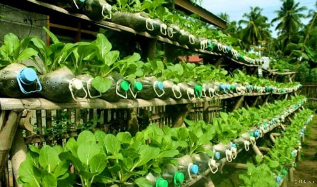 4. Trồng rau bằng chai nhựa
