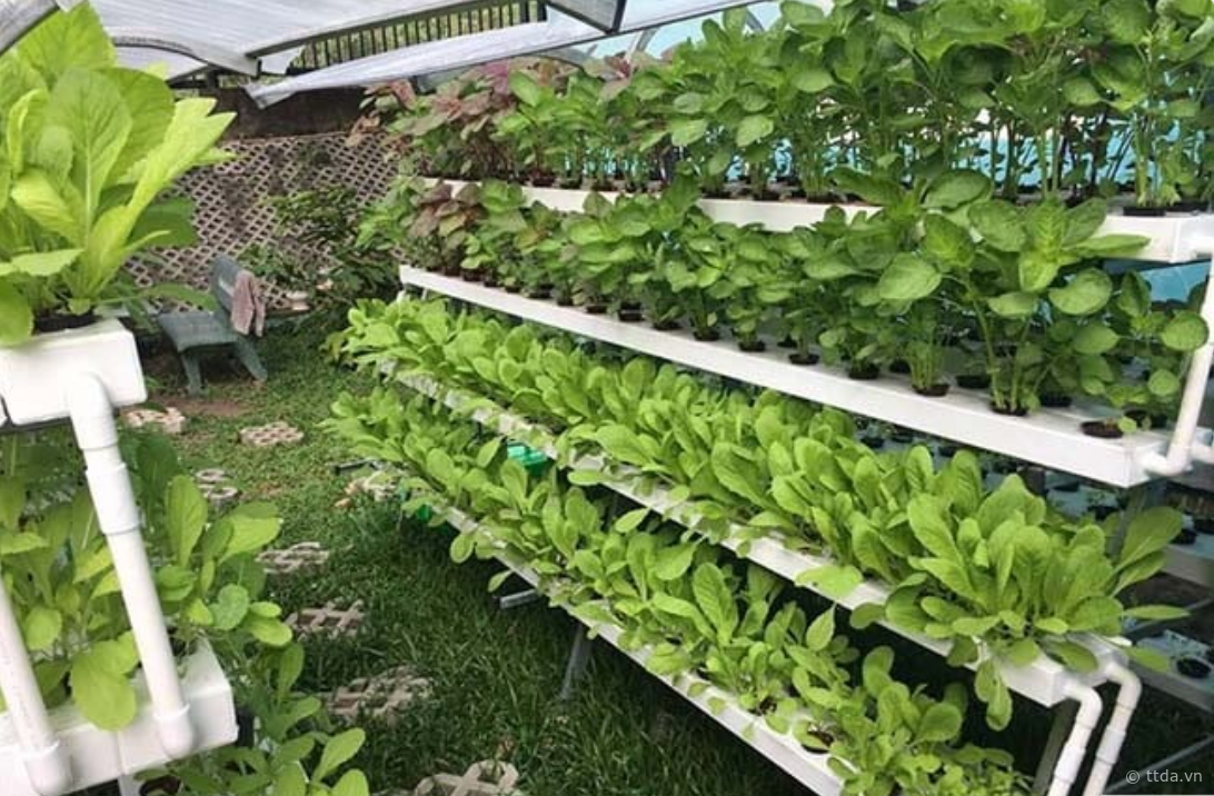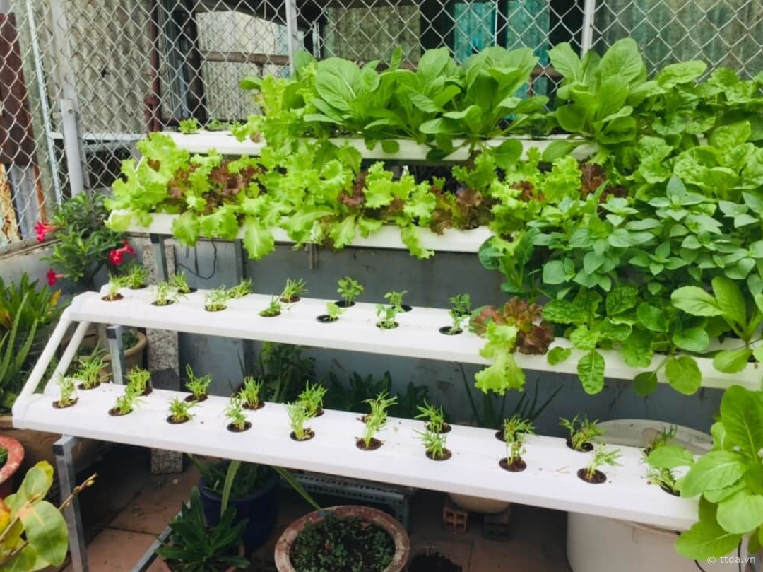 Cách trồng rau trên giàn chữ A là một cách làm phổ biến, đặc biệt với các loại rau thủy canh. Cách làm này mang lại hiệu quả cao, cung cấp lượng rau lớn mà không cần tốn nhiều công chăm sóc. Đặc biệt, nếu diện tích sân thượng đủ rộng, bạn có thể làm vườn rau trên sân thượng theo giàn chữ A để bán.