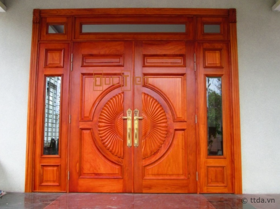 Đây là mẫu cửa gỗ ra vào ấn tượng, đẹp mắt dành cho những ngôi biệt thự sang trọng.