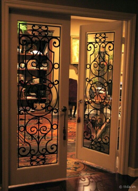Còn đây là mẫu thiết kế cửa sắt đẹp 2 cánh vừa làm cửa chính vừa làm được cửa thông phòng, các đường nét hoa văn đối xứng 2 bên cánh tạo nên sự hoàn hảo và đẹp mắt. Mẫu cửa sắt đẹp mắt này phù hợp với các khu nhà chung cư, thông phòng ăn, phòng đọc sách,...
