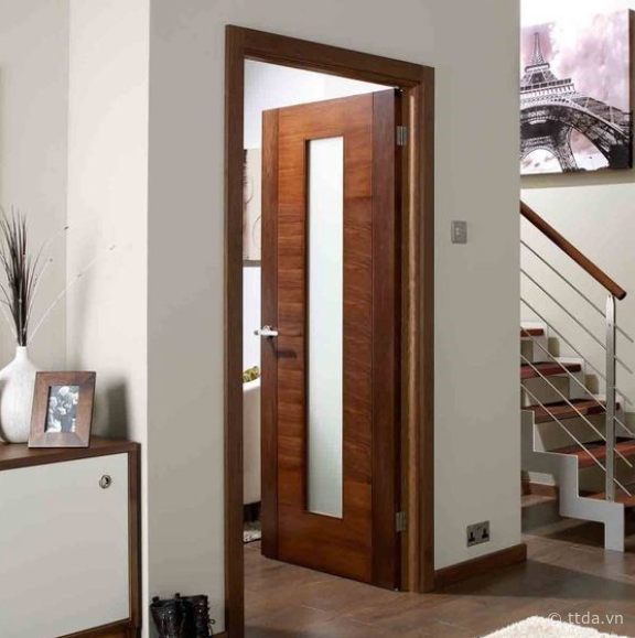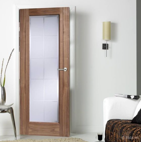 Đây là một trong những mẫu cửa gỗ đẹp nhất bởi thiết kế đơn giản, không cầu kỳ mà vẫn tạo được điểm nhấn bằng phần kính long láng và cuốn hút.
