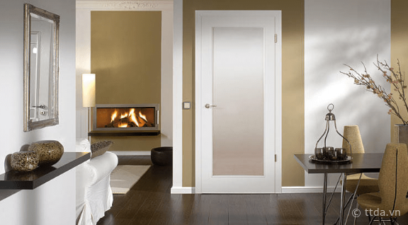 Cửa gỗ kính cường lực đơn giản mà tinh tế