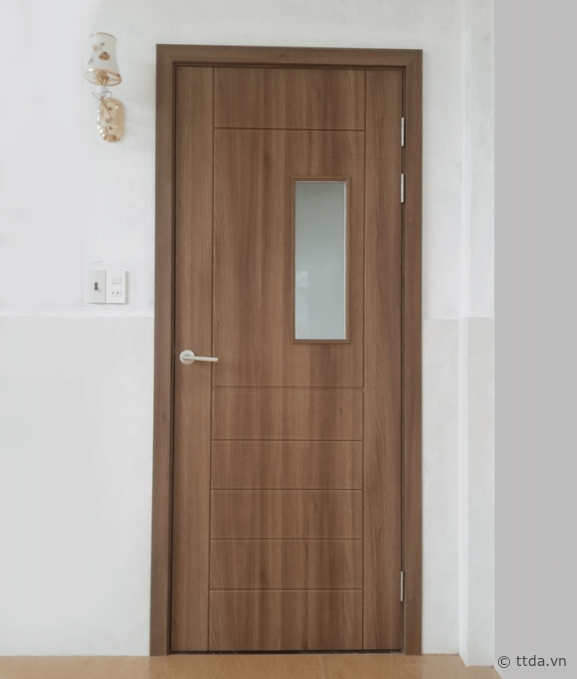 Cánh cửa gỗ đẹp này có sự cách điệu nhẹ nhàng qua chi tiết hoa văn trên mặt kính khiến cho căn phòng tắm, nhà vệ sinh của bạn trở nên hiện đại hơn.