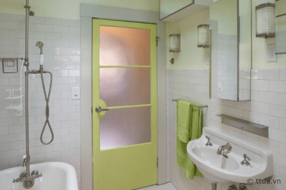 Cửa gỗ kính nhà vệ sinh, nhà tắm được cách điệu nhẹ nhàng