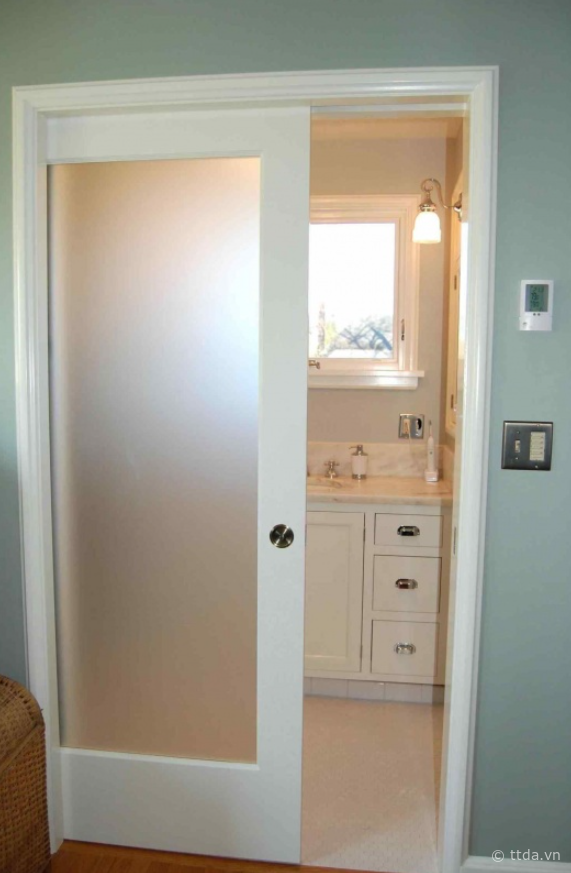 Đây là mẫu cửa kín đáo, chất liệu gỗ và kính cường lực đục màu rất phù hợp cho không gian phòng tắm và phòng vệ sinh, màu sáng phù hợp cùng tay nắm dễ dàng sử dụng. Đây là một trong các mẫu cửa đẹp phù hợp cho mọi căn nhà.