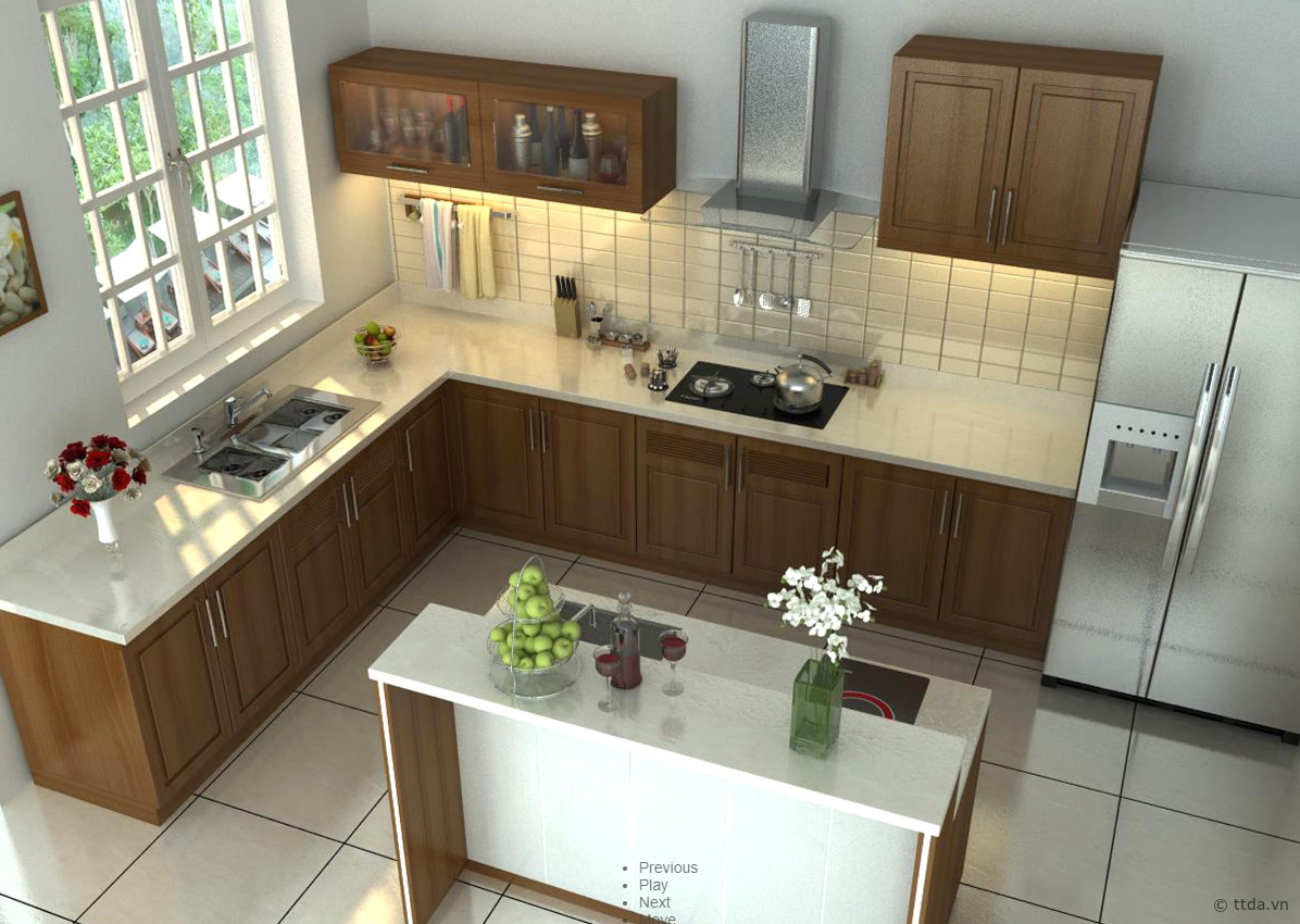 – Đối với những căn nhà hiện đại thì nên đặt máy hút khói phía trên bếp, còn bồn rửa đặt cách xa bếp, thấp hơn bếp.