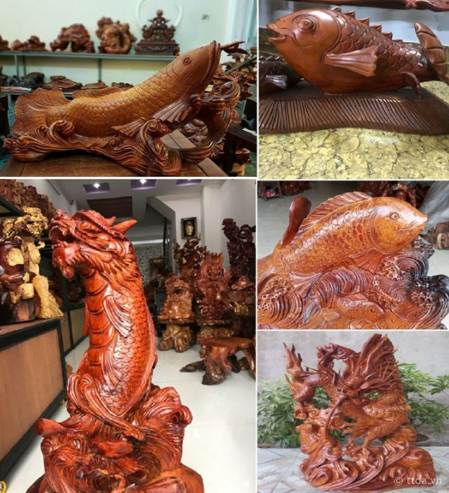 Tượng gỗ cá chép hóa rồng thúc đẩy đường công danh
